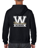WANAQUE School Black Heavy Blend FULL-ZIP Hoodie w/ Large WANAQUE School "W" 2 color Logo on Back.