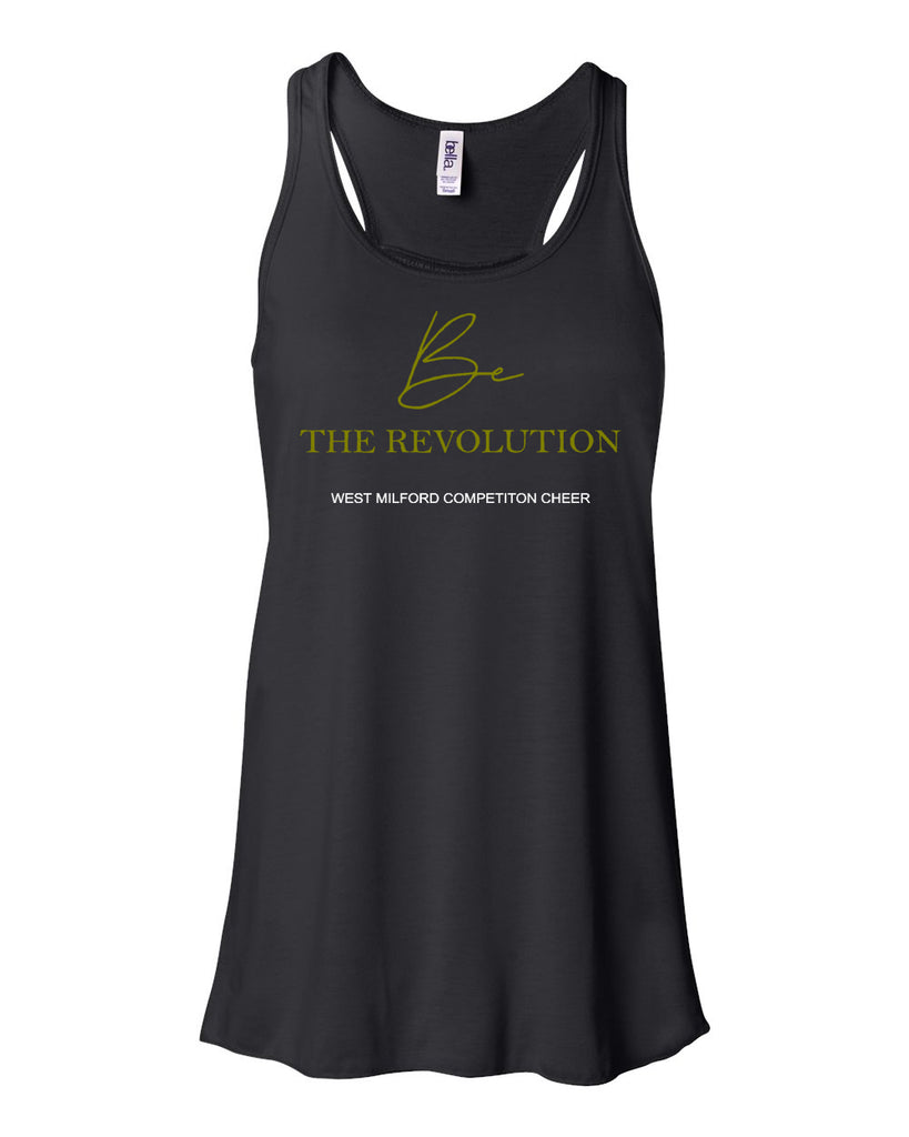 WMCC Black Women's Flowy Racerback Tank - 8800 W/ Be the Revolution Design on Front.