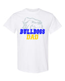 Bulldogs White 100% Cotton Tee w/ Bulldogs DAD Design on Front.