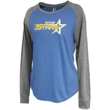 Butler Stars Gray/Blue Jersey Raglan Crewneck Shirt w/ Butler Stars Design on Front.