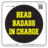 HEAD BADASS IN CHARGE V1 Black/Yellow 2" Round Hard Hat-Helmet Full Color Printed Decal