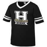 HASKELL SCHOOL Stripe Jersey Short Sleeve Tee w/ HASKELLSchool "H" Logo 2 color on Front.