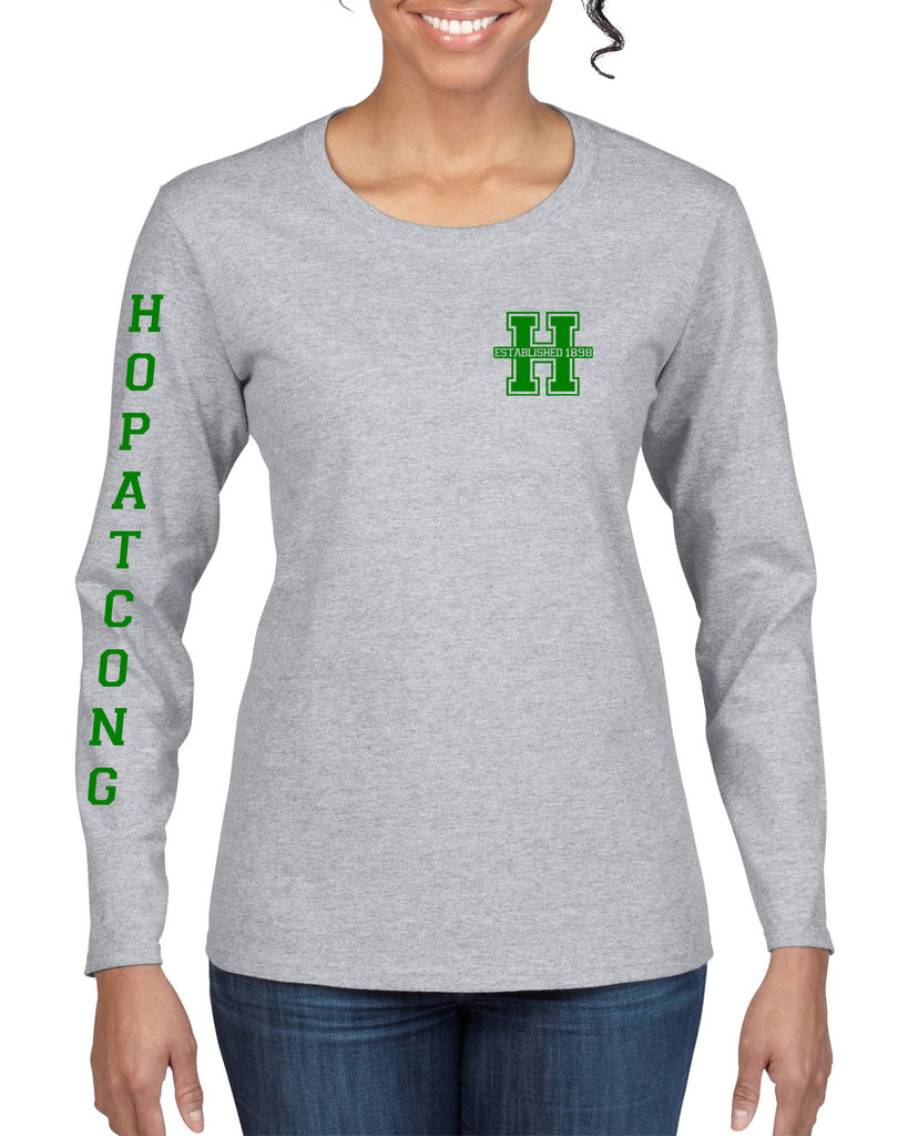 Hopatcong Long Sleeve Tee w/ Small Chest Logo & Hopatcong Down Sleeve Graphic Transfer Design Shirt