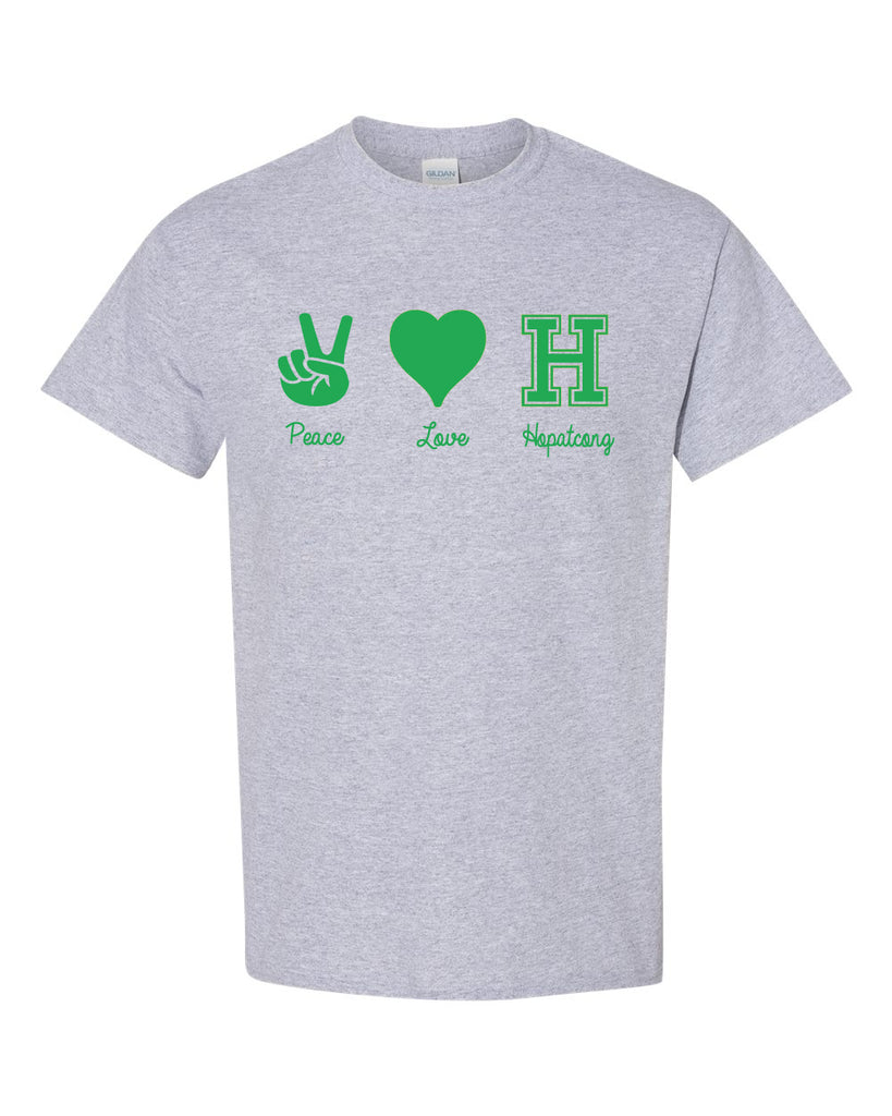 Hopatcong Short Sleeve Tee w/ Peace Love Hopatcong Design on Front.