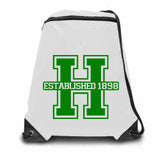 HOPATCONG White Zippered Drawstring Backpack w/ HOPATCONG "H" Logo on Front.