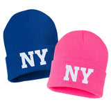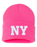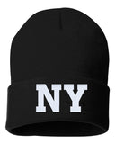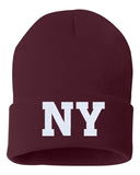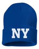 NY State Abbreviation Embroidered Cuffed Beanie Hat
