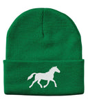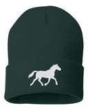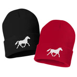Running Horse Silhouette Embroidered Cuffed Beanie Hat
