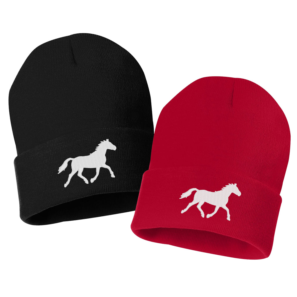 JUMPING HORSE Embroidered Cuffed Beanie Hat