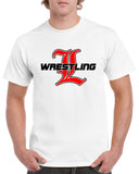 Lakeland Wrestling White Heavy Blend Shirt w/ Lakeland Wrestling Old English "L" logo on Front.