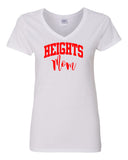 Heights White Short Sleeve Tee w/ HEIGHTS Mom Design in Red on Front.