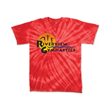 RIVERVIEW GYMNASTICS Cyclone Tie Dye Short Sleeve Tee w/ Full Color Logo on Front.