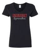 Riverview Gymnastics Heavy Cotton Women's V-Neck T-Shirt w/ 2 Color SPANGLE Design on Front.
