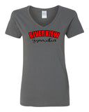 • Riverview Gymnastics Heavy Cotton Women's V-Neck T-Shirt w/ RIVERVIEW24 Design on Front.