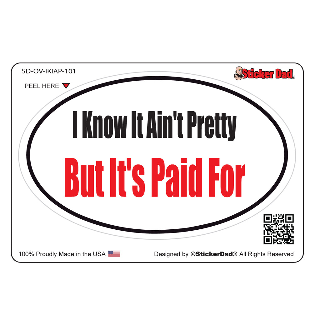 I KNOW IT AINT PRETTY 101 Oval Full Color Printed Vinyl Decal Window Sticker