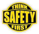 Think Safety First V2 Yellow/Black 2" Round Hard Hat-Helmet Full Color Printed Decal