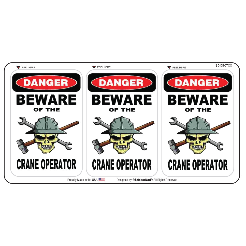 Danger Beware of the Crane Operator Minis 2.25" x 1.5" (3 pack) Hard Hat-Helmet Full Color Printed Decal