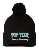 • top tier dance 12" knit pom beanie - sp15 w/ top tier dance academy logo embroidered.