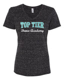TOP TIER Dance Black JERZEES - Women's Snow Heather Jersey V-Neck - 88WVR w/ Top Tier Dance Academy Logo on Front