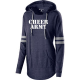 Cheer Army Navy AS Ladies Hooded Lowkey Pullover w/ Cheer Army Stencil Logo on Front.