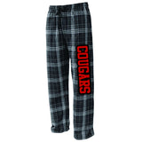 Hazleton Area Cougars - Black/White Flannel Pants w/ COUGARS 2 Color Design Down Leg