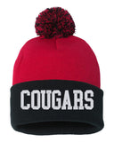 Hazleton Area Cougars - Red/Black Sportsman - 12" Pom-Pom Cuffed Beanie - SP15 w/ COUGARS Embroidered