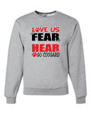 Hazleton Area Cougars - Sport Gray JERZEES - NuBlend® Crewneck Sweatshirt - 562MR w/ LOVE US Design on Front.