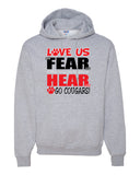 Hazleton Area Cougars - Sport Gray JERZEES - NuBlend® Hooded Sweatshirt - 996MR w/ LOVE US Design on Front.