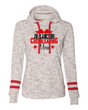 Jr Lancers Cheer Women’s Mélange Fleece Striped-Sleeve Hooded Sweatshirt - 8674 w/ Cheerleading Mom Color Design on Front.