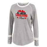 Jr Lancers Competition Cheer Gray Ringer Stripe Crew Shirt w/ 2 color MOM Design on Front.