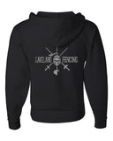 Lakeland Fencing Black 50/50 Blend Full Zip Sweatshirt w/ Gray Design on Back