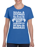 Sticks & Stones May Break My Bones But Squats Will Make Me Badass Graphic Transfer Design Shirt